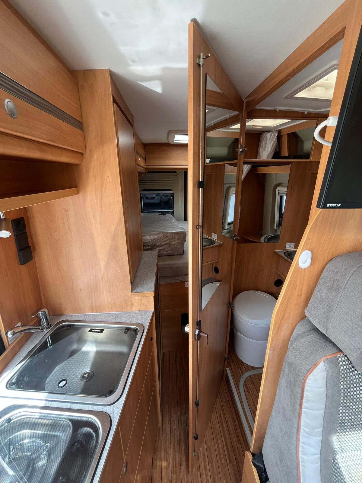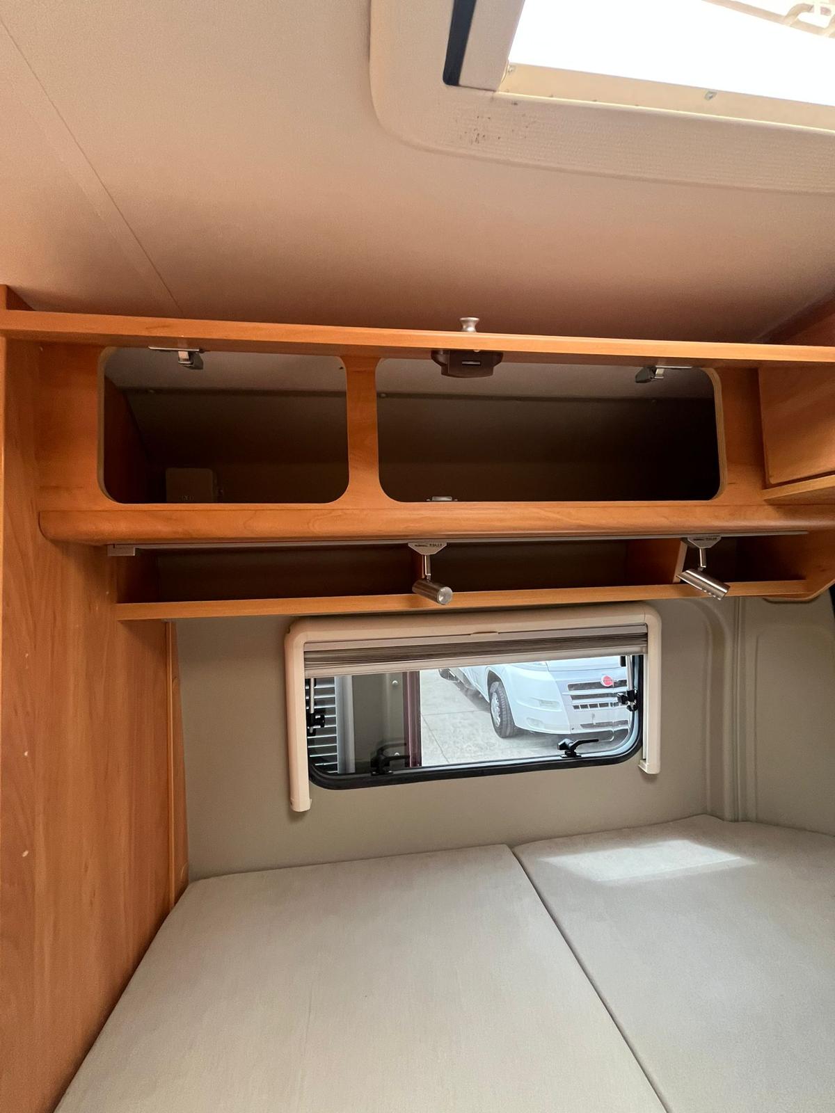 - Cama isla trasera (160×195 cm) y cama basculante cabina (140×190 cm)