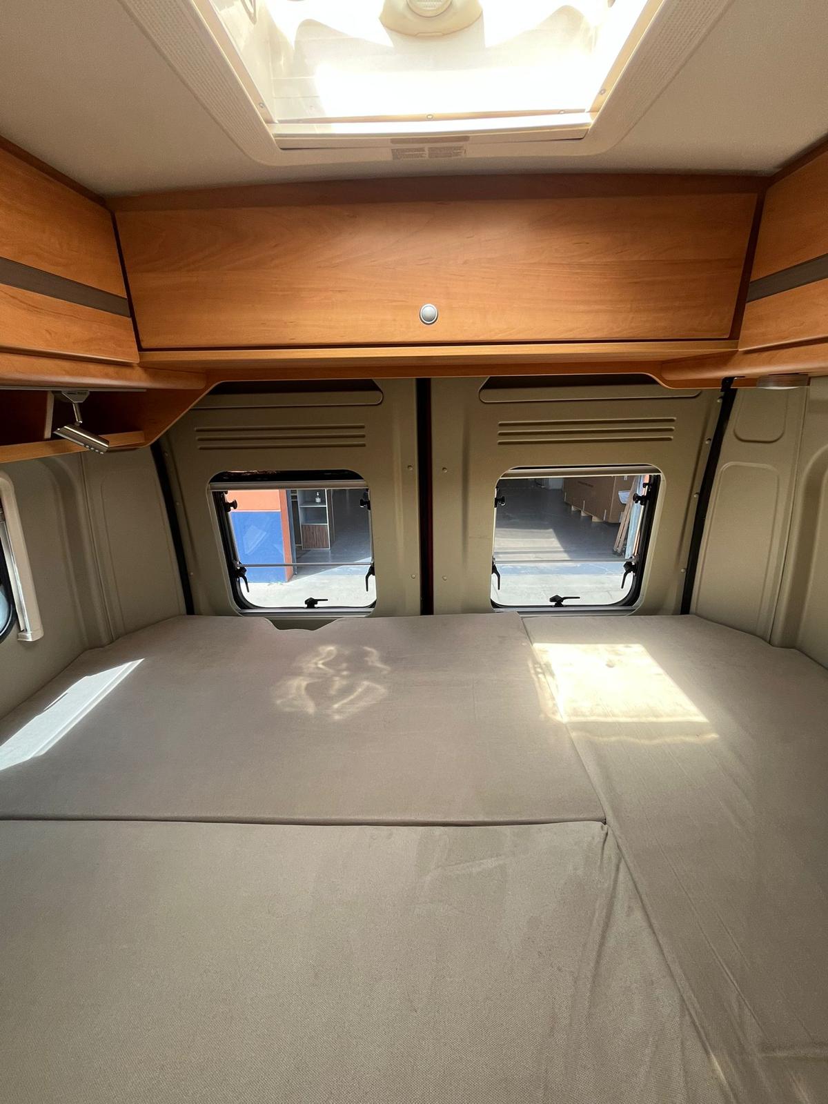 - Literas traseras (110×220 cm) cama zona capuchina (155×220 cm) y cama en zona Dinette (125×180 cm)